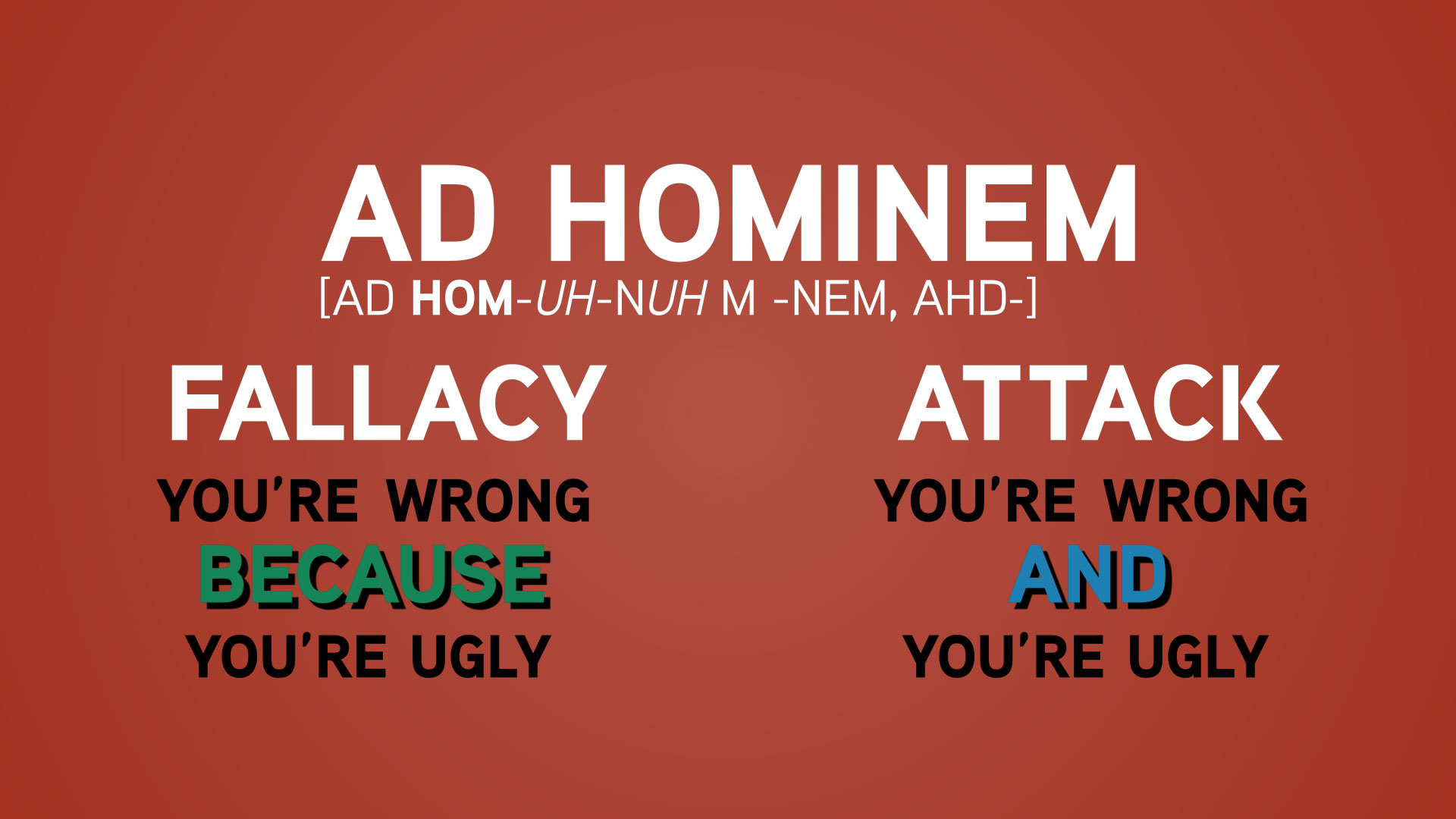 É muito importante evitar este tipo de comportamento, pois uma simples conversa pode se transformar em uma verdadeira guerra, e levar alguém a cometer outra falácia lógica: o ad hominem, que tem muito a ver com o primeiro tópico abordado neste texto (o alvo são as ideias, não as pessoas). No ad hominem, a argumentação é deixada de lado e o que é atacado é o caráter ou os traços pessoais.