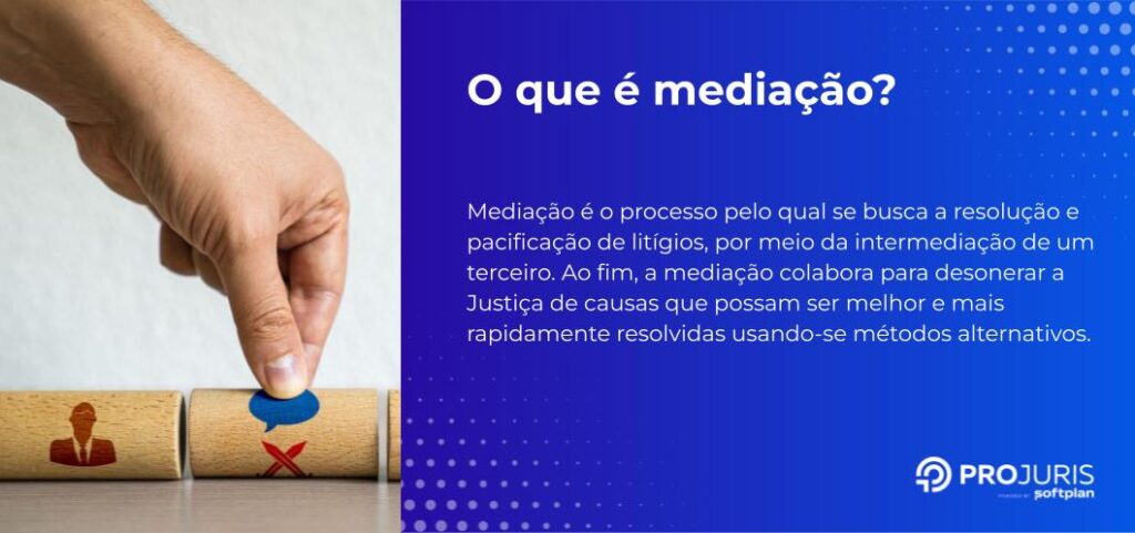 Mediação é o processo pelo qual se busca a resolução e pacificação de litígios, de modo a desonerar a jurisdição de causas que possam ser melhor e mais rapidamente resolvidas usando-se métodos alternativos.