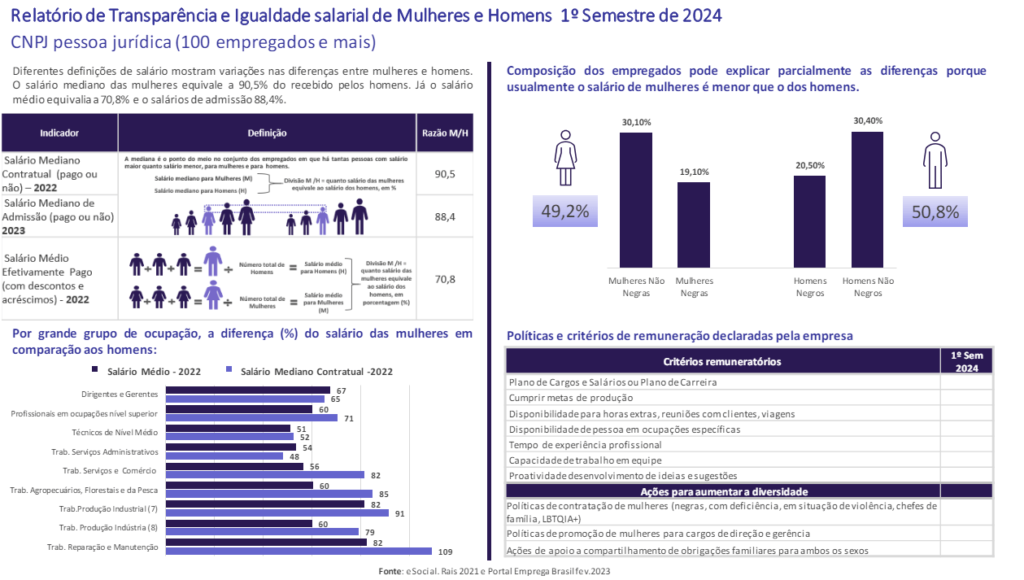 Para não ferir a Lei Geral de Proteção de Dados (LGPD), as informações divulgadas no relatório são anonimizadas. Isto é, não permitem a identificação do salário individual de um determinado trabalhador da empresa. Mas permitem, isso sim, estabelecer comparações entre condições salariais e de carreira de homens e mulheres numa mesma organização.