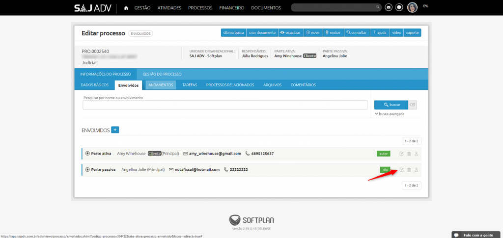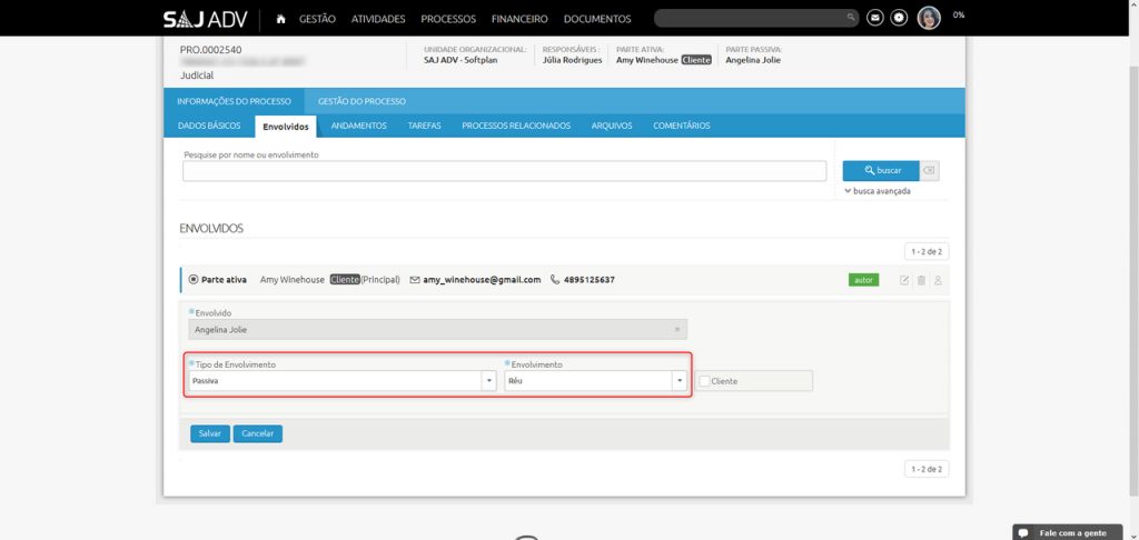 Nessas ocasiões, quando vincular a captura a um processo do PROJURIS ADV basta modificar o tipo de envolvimento, conforme passos que seguem: